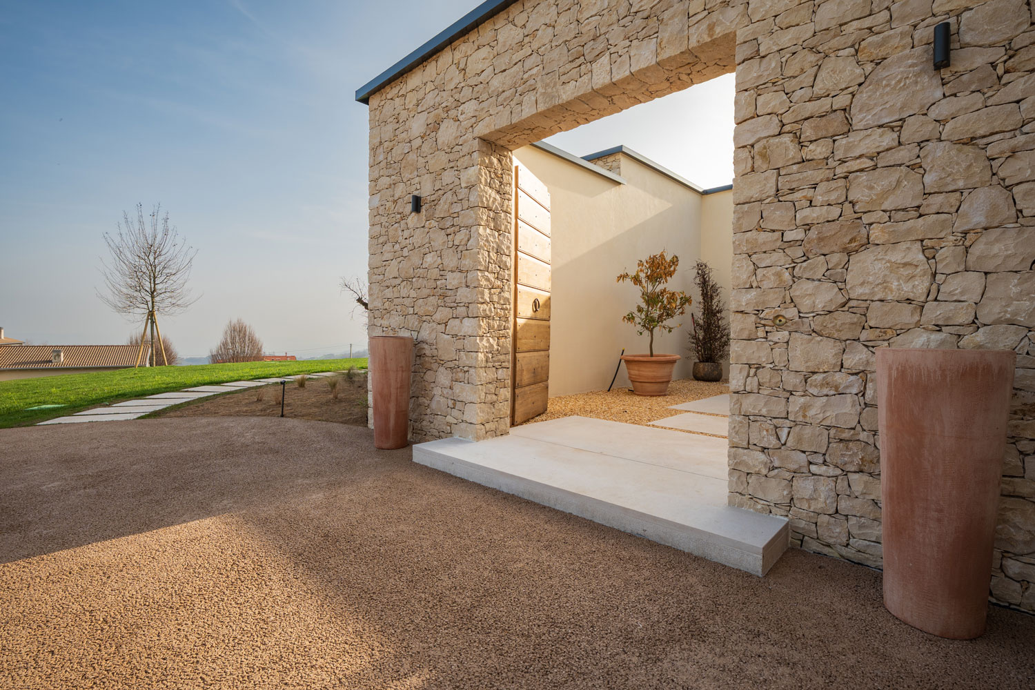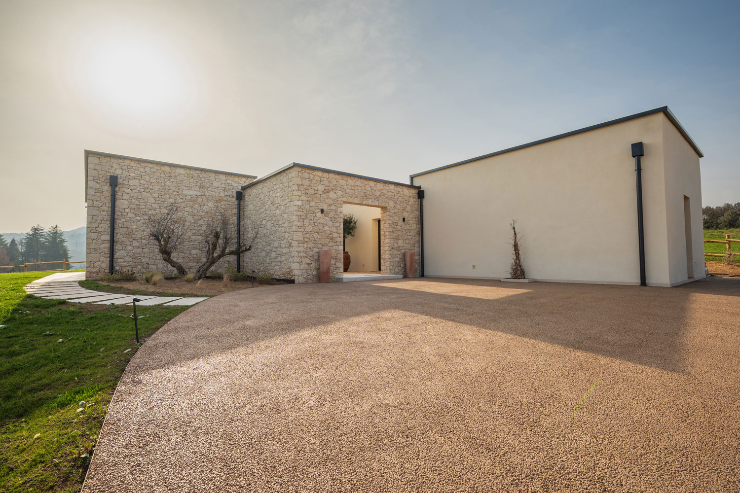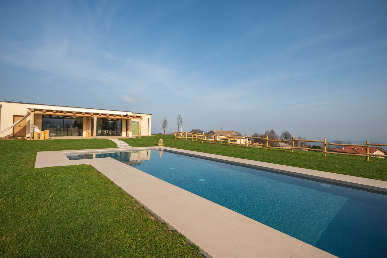 Realizzazione: per la pavimentazione delle aree esterne di una villa con piscina immersa nei colli vicentini è stato scelto Plam Cem Drain Isoplam®, il cemento drenante che consente la gestione naturale delle acque meteoriche, evitando ristagni e migliorando la permeabilità del suolo. La superficie continua, realizzata nel colore Yellow, richiama le tonalità della terra e si armonizza con il verde circostante, mantenendo un aspetto materico e naturale anche nelle zone carrabili e negli accessi.