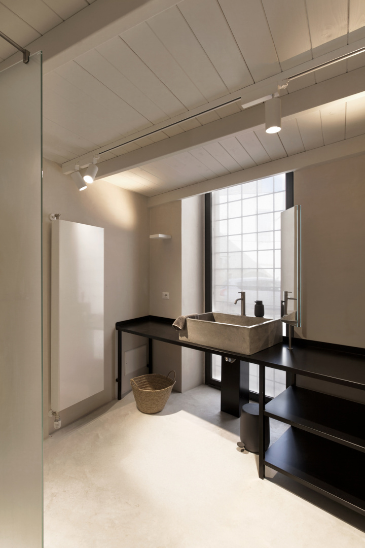 Scala interna a gradini sfalsati su pavimento Deco Nuvolato cemento effetto nuvolato opaco, progetto Arch. Reuter+Schmidt a Nardò