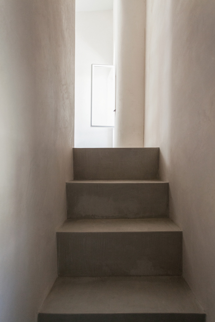 Scala interna in microcemento Microverlay opaco, progetto Arch. Reuter+Schmidt a Nardò