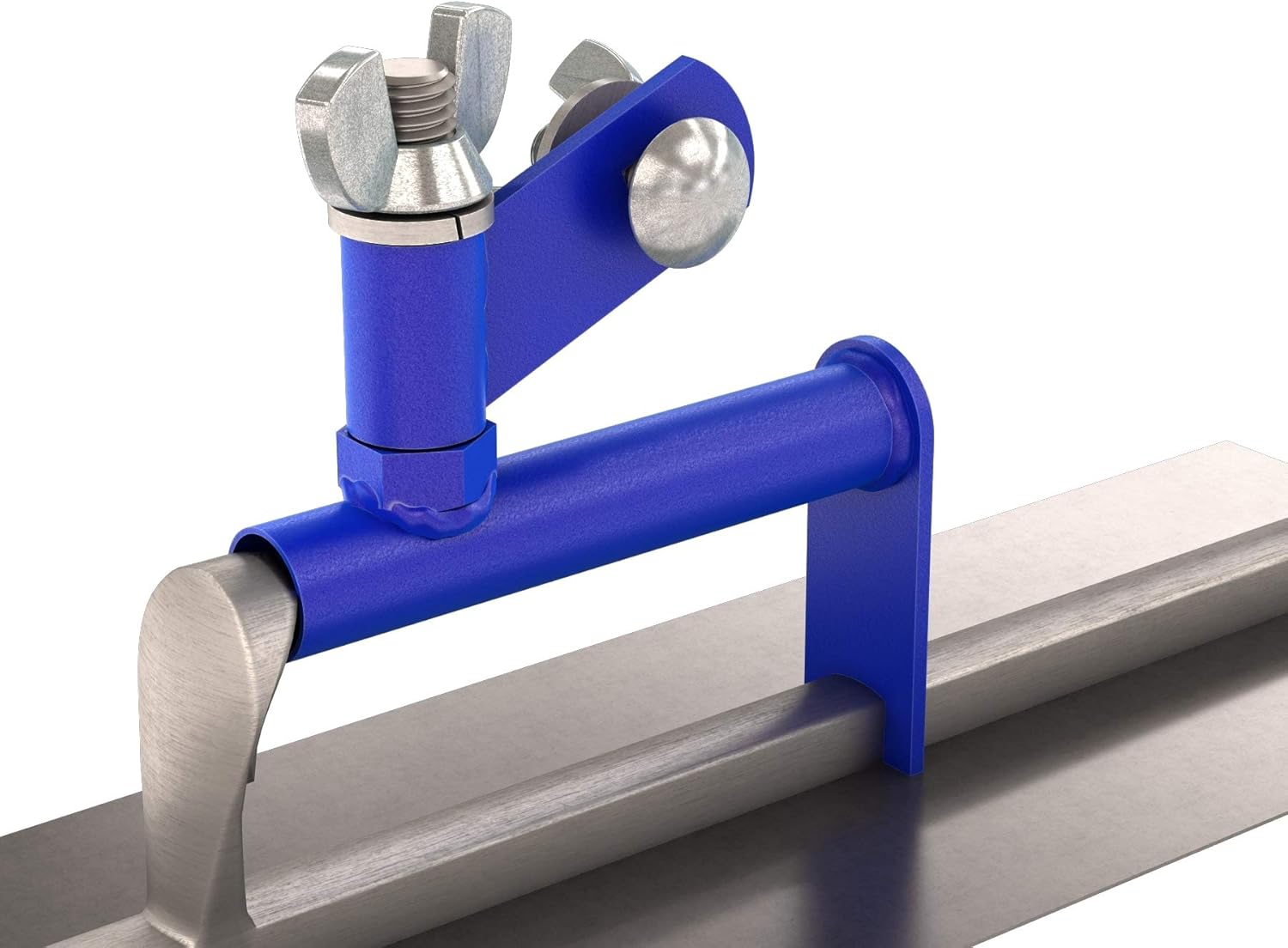 Adattatore in alluminio con giunto girevole progettato per trasformare una normale cazzuola o spatola per cemento in un attrezzo tipo Fresno, ideale per la lisciatura del calcestruzzo in posizione eretta e a distanza, migliorando ergonomia, controllo e velocità di lavorazione.