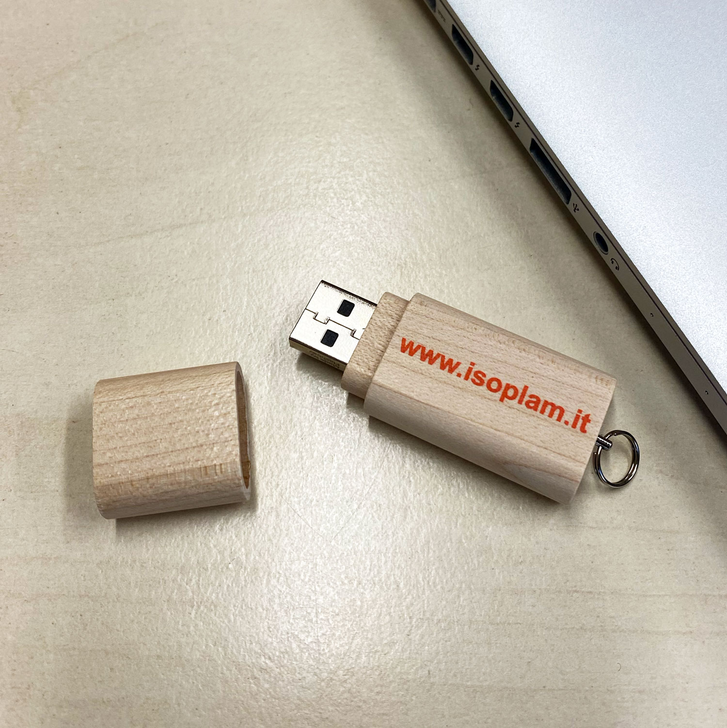 Realizzata in scocca in legno d’acero certificato FSC, che unisce design elegante e attenzione alla sostenibilità. Su richiesta può essere precaricata con contenuti promozionali Isoplam, risultando uno strumento pratico per fiere, corsi e incontri commerciali.