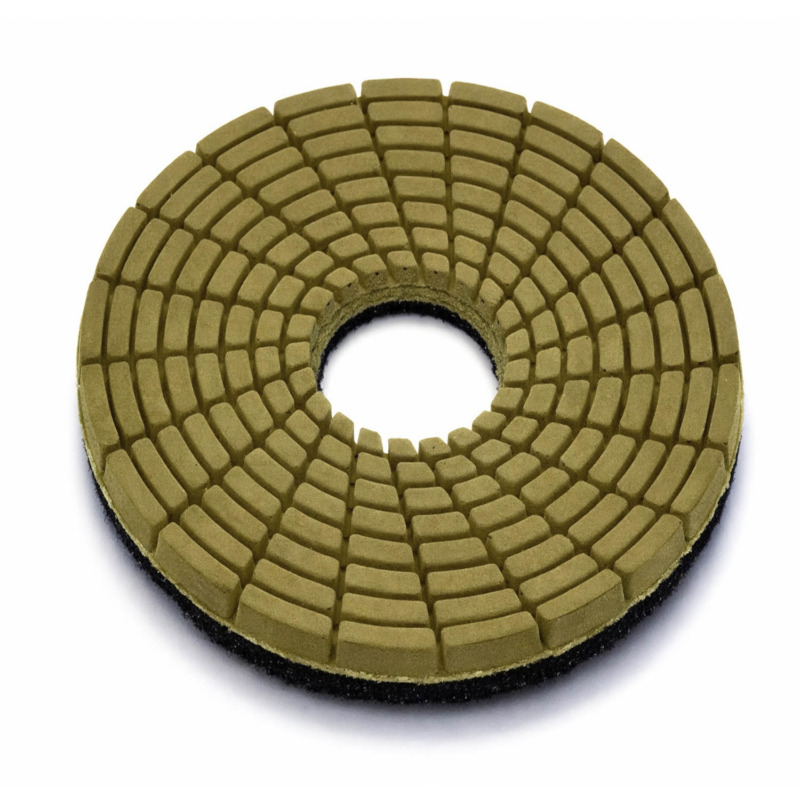 Gli utensili diamantati di diametro 125 mm / 5″, sono gli accessori indispensabili per la lucidatura di superfici in marmo, granito, terrazzo alla veneziana, micro veneziana Terrazzoverlay Isoplam, maxi veneziana Terrazzoverlay XL Isoplam, palladiana, graniglia, cemento e pietra naturale. Sono dischi resinoidi formati da polvere diamantata in resistente resina.