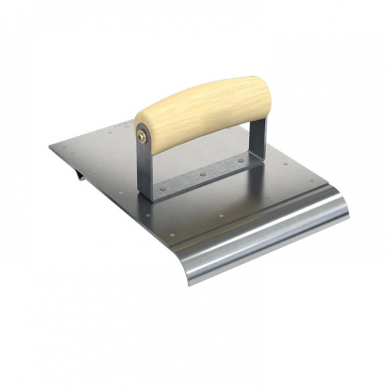 L’attrezzo realizza una nervatura profonda 0,64 cm, posizionata a 15,2 cm dal bordo esterno stondato. Il raggio del nasello è di 1,9 cm con lunghezza di 1,9 cm, garantendo un profilo arrotondato uniforme e resistente nel tempo. È realizzato in acciaio inox per assicurare durabilità e resistenza alla corrosione ed è dotato di impugnatura ergonomica in legno per un utilizzo confortevole anche nelle lavorazioni prolungate in cantiere.