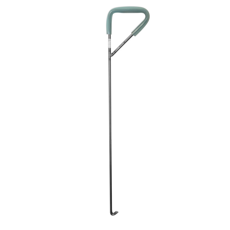 Un’estremità è dotata di uncino sagomato per agganciare in modo sicuro la rete, mentre l’altra presenta un’impugnatura ergonomica rivestita in gomma che garantisce una presa stabile e confortevole, migliorando il controllo durante l’operazione.