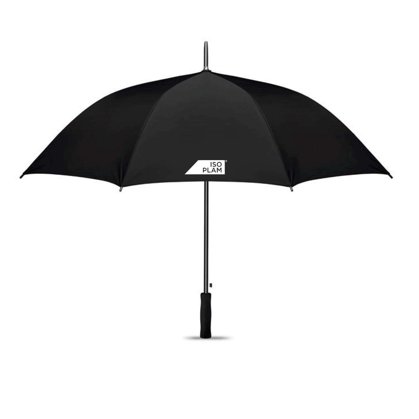 L’ombrello personalizzato Isoplam è un accessorio elegante e pratico, personalizzato con logo Isoplam a contrasto. Realizzato in poliestere nero con un raffinato interno argentato, combina stile e funzionalità. La sua struttura è solida e resistente, grazie all’asta e al telaio in metallo placcato nero, con punte in plastica per una maggiore durata. Il manico dritto in EVA assicura una presa confortevole, mentre la chiusura manuale ne facilita l’utilizzo.