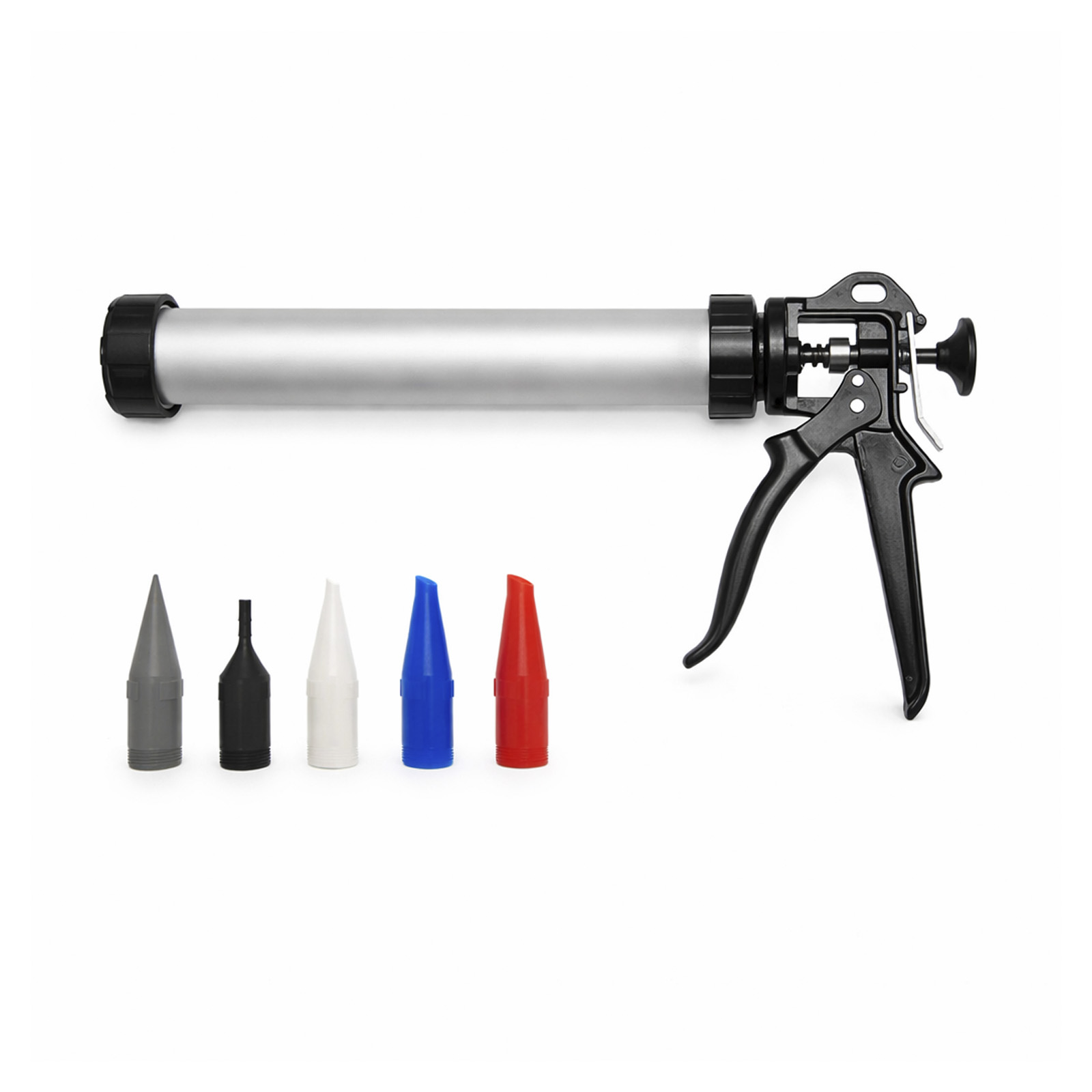 Il sistema di spinta manuale consente un’erogazione controllata del materiale, garantendo precisione applicativa anche in spazi ristretti o in lavorazioni di dettaglio. La pistola è dotata di portaugelli e beccucci tecnici intercambiabili per adattare il diametro di estrusione alle diverse sezioni del giunto.