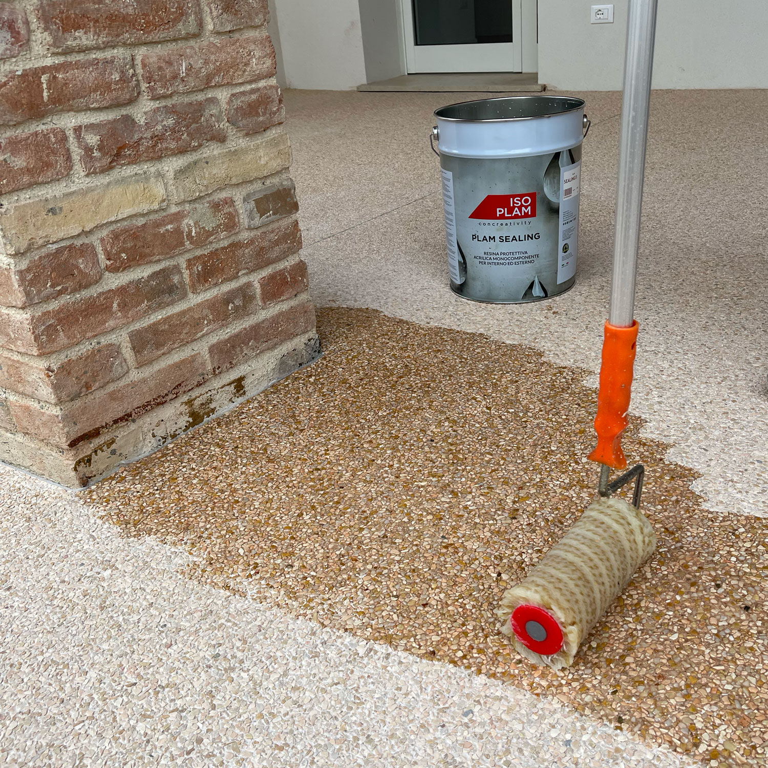 Plam Sealing/S Isoplam è consigliata per la protezione dei pavimenti stampati realizzati in zone con climi rigidi e in zone in prossimità del mare. Aumenta la resistenza al degrado causato da cicli di gelo e disgelo e dall’azione salina. La vernice trasparente per calcestruzzo ravviva il colore, agevola le operazioni pulizia e dona lucentezza alla superficie.