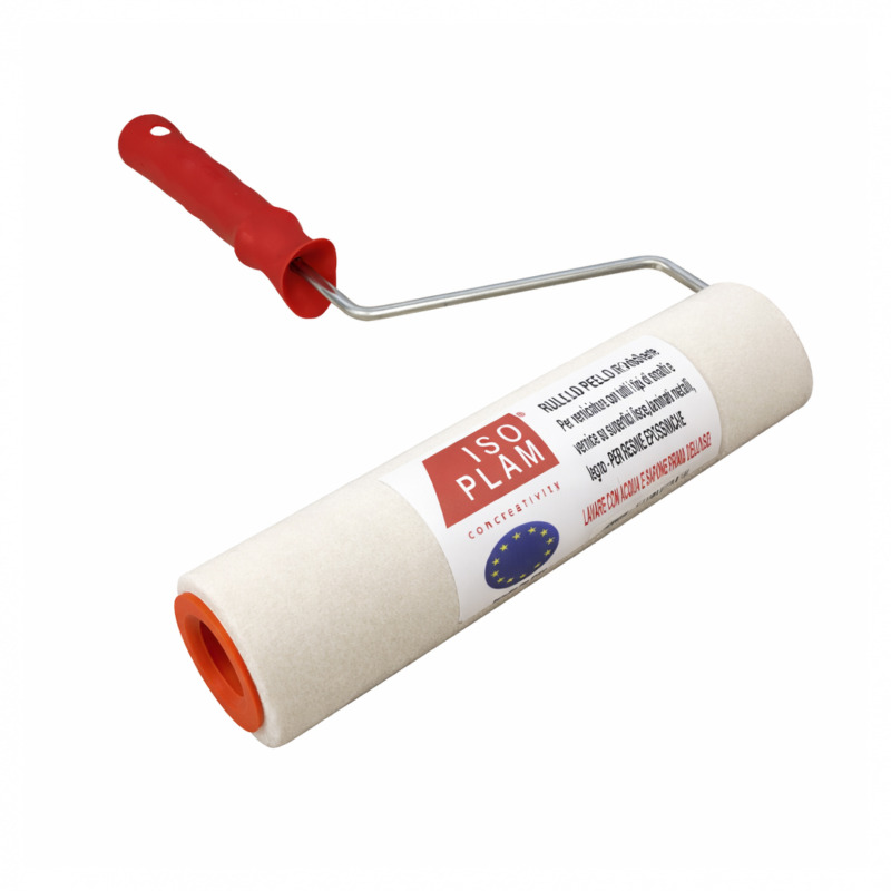 Il rullo professionale a pelo corto Isoplam è composto da un manico in plastica con impugnatura anatomica, al quale è possibile attaccare le aste standard con punta conica, e da un rullo di diametro 4,2 cm realizzato in fibre di tessuto naturale velour effetto velluto in lana e cotone, resistenti a diluenti e a vernici sintetiche. Il rullo, se lavato subito dopo l’uso, è riutilizzabile.