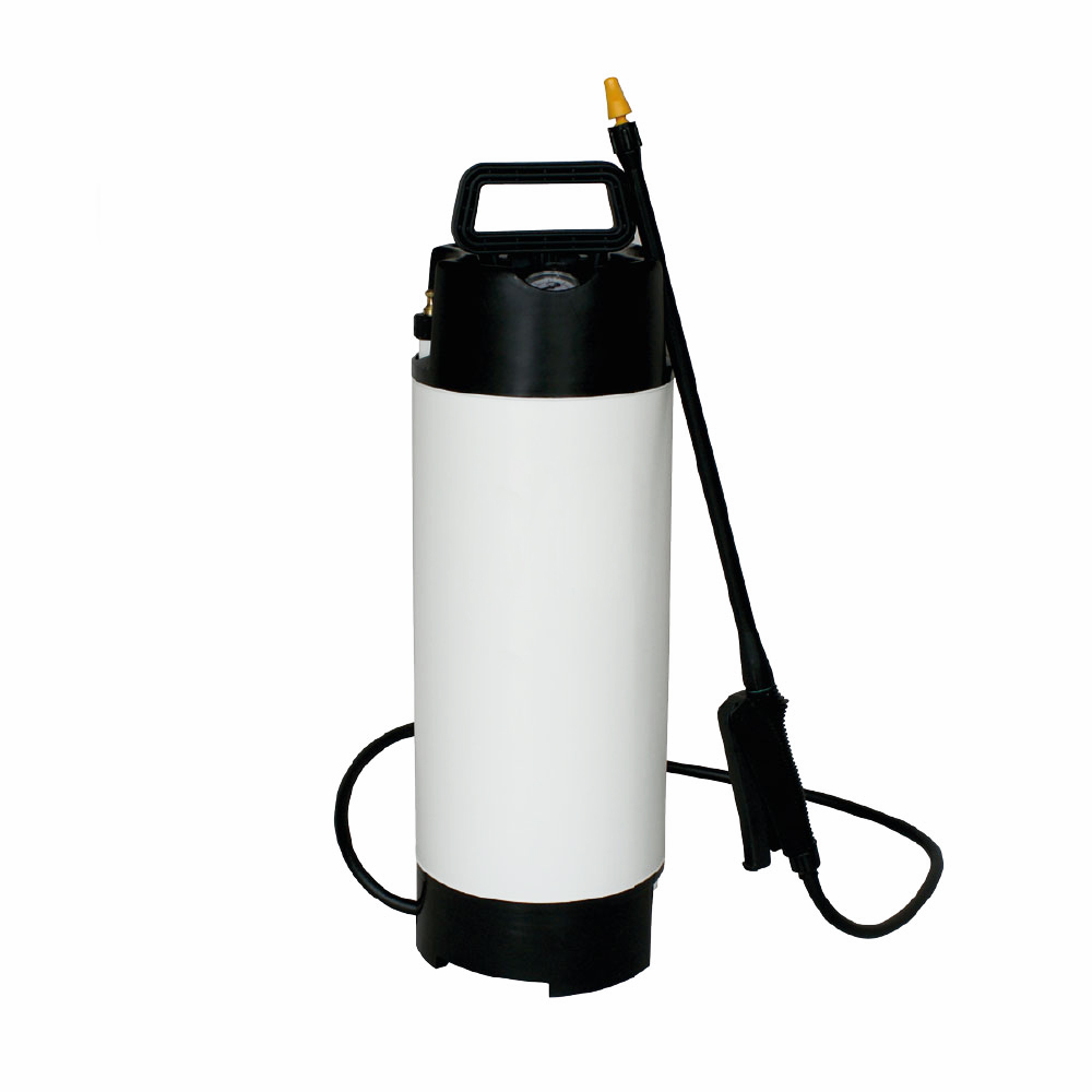 Il serbatoio è realizzato in PE (polietilene) con indicatore di livello del liquido; l’ugello è in PP (polipropilene); molla, spillo, impugnatura e valvola sono in acciaio inox AISI 302. La guarnizione o-ring in FPM (fluorocarbonio) garantisce compatibilità con soluzioni aggressive fino al 20% di acido cloridrico, soda caustica, candeggina, disinfettanti, benzina, gasolio, calce viva, detergenti, diserbanti, olii idraulici e acqua di mare. Non è idonea per acetone, ammoniaca, solventi, trielina e lacche.