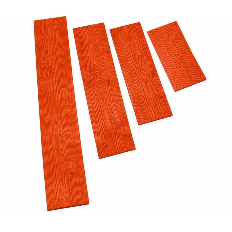 La serie Cedar Wood Planking è composta da un set di stampi con assi singole larghe circa 29 cm, disponibili in diverse lunghezze, pensate per essere alternate durante la posa e garantire un risultato naturale e non ripetitivo. Questa soluzione è largamente impiegata per la realizzazione di patii, bordi piscina, gazebo e pavimentazioni outdoor, dove si desidera un effetto legno autentico abbinato alle prestazioni tecniche del calcestruzzo.