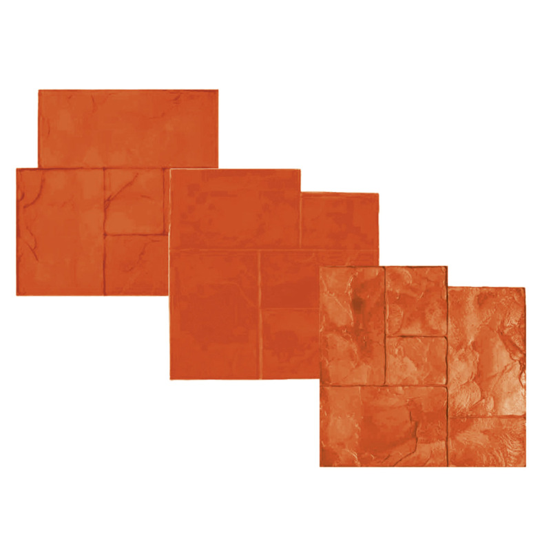 Lo stampo Pietra mista piccola è una soluzione decorativa per pavimentazioni in cemento stampato caratterizzata dalla combinazione di piastrelle in pietra squadrata e regolare di piccolo formato, che conferiscono alla superficie un aspetto ordinato e ben definito. Il disegno compatto e regolare crea una trama visiva equilibrata, ideale per spazi che richiedono precisione e controllo formale.