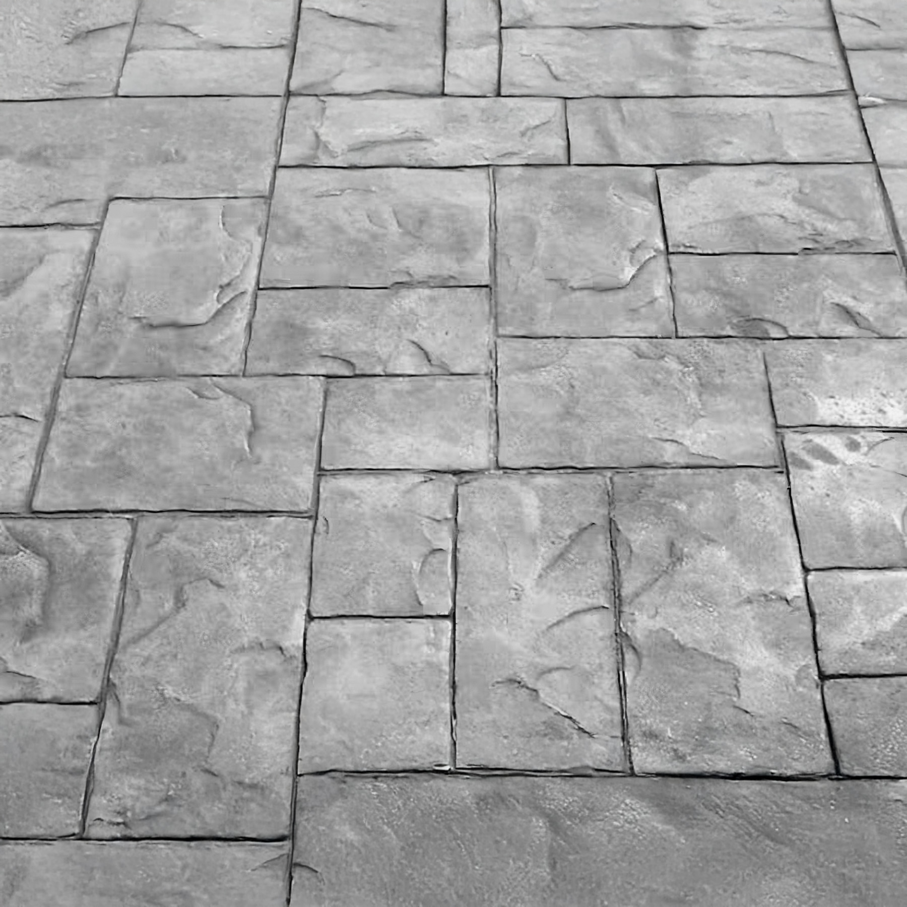 Lo stampo Pietra mista piccola è una soluzione decorativa per pavimentazioni in cemento stampato caratterizzata dalla combinazione di piastrelle in pietra squadrata e regolare di piccolo formato, che conferiscono alla superficie un aspetto ordinato e ben definito. Il disegno compatto e regolare crea una trama visiva equilibrata, ideale per spazi che richiedono precisione e controllo formale.