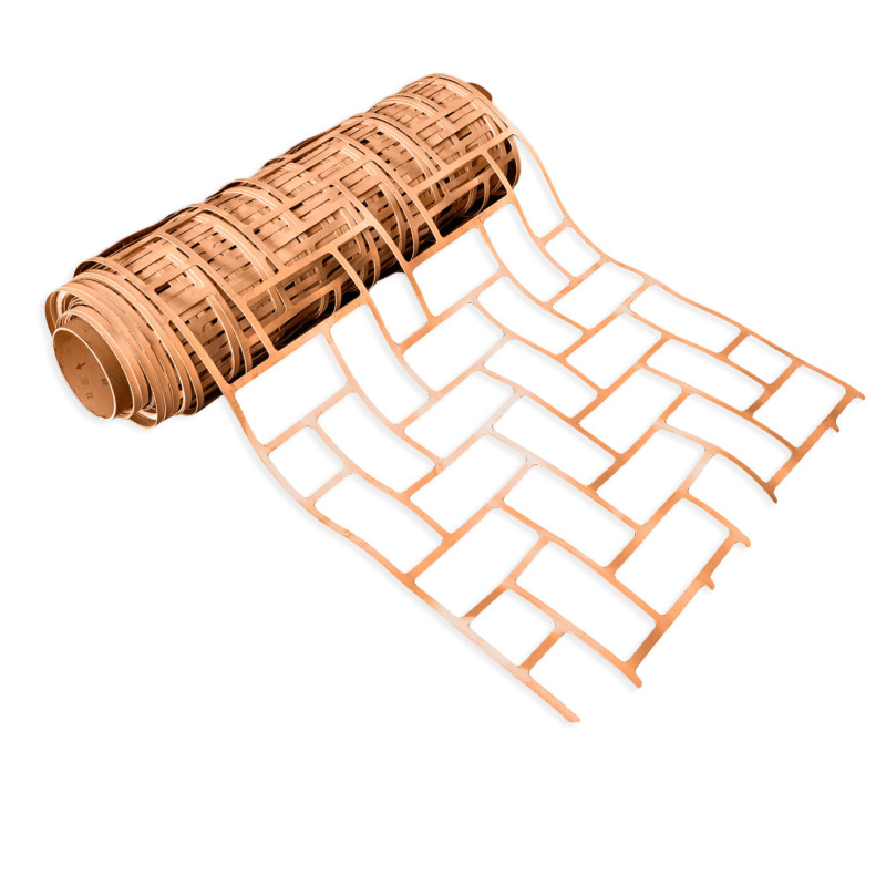 La mascheratura genera una superficie caratterizzata da dinamicità visiva e senso di movimento, mantenendo al tempo stesso un pattern regolare e geometrico. La facilità di posa e riposizionamento agevola il lavoro dell’applicatore, rendendo lo stencil ideale per pavimentazioni e rivestimenti esterni in contesti residenziali e commerciali, sia in interpretazioni classiche che contemporanee, idonee a uso pedonale e carrabile. Lo stencil viene fornito in comodi rotoli, pratici per applicazioni su superfici di ampia estensione.
