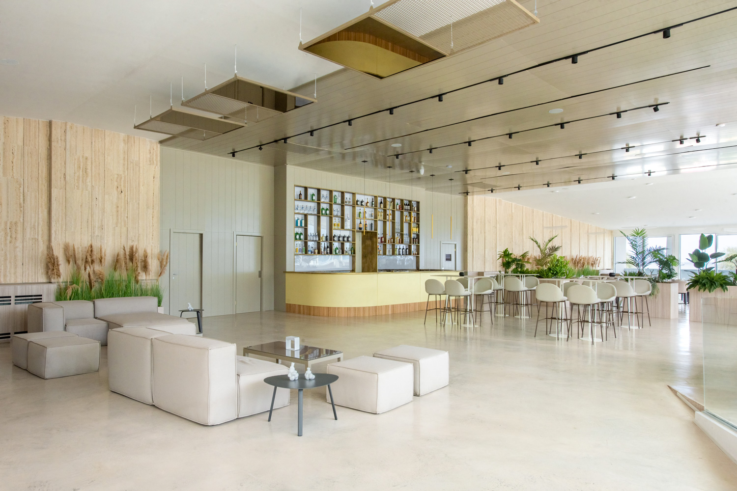 Skyconcrete Indoor, il rivestimento cementizio continuo di basso spessore (2 mm) di Isoplam è stato scelto dal progettista perché consente una superficie uniforme senza fughe visivamente invasive. Questo ha permesso di rispettare l’estetica minimalista dello spazio, favorire il senso di apertura e flusso tra le aree e semplificare la manutenzione, assecondando le esigenze tecniche del mondo della ristorazione, dove traffico, pulizia e durata sono requisiti essenziali.